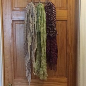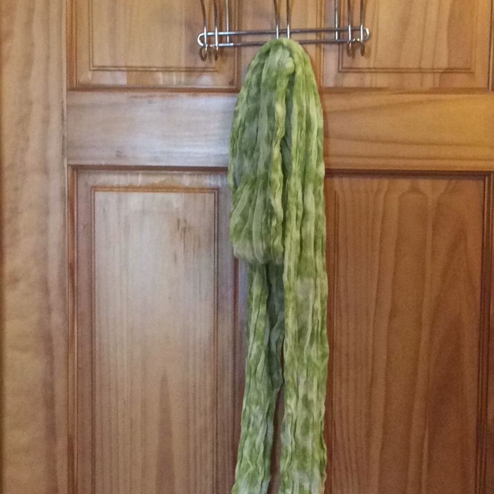 Cute skinny green and whit scarf perfect for spring. Looks great in hair too. Buy 2 scarves get the 3rd free!