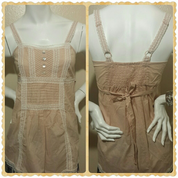 Spring shirt with cute spaghetti straps light material cute beige with light off white trim