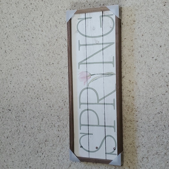 NWT Spring sign, all wood. The dark brown spots in picture are suppose to be there. I bought 2 and both have them. I only need one so selling the extra.