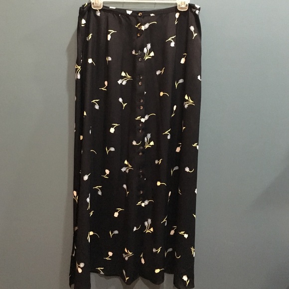 Navy full length skirt with buttons and spring flowers.