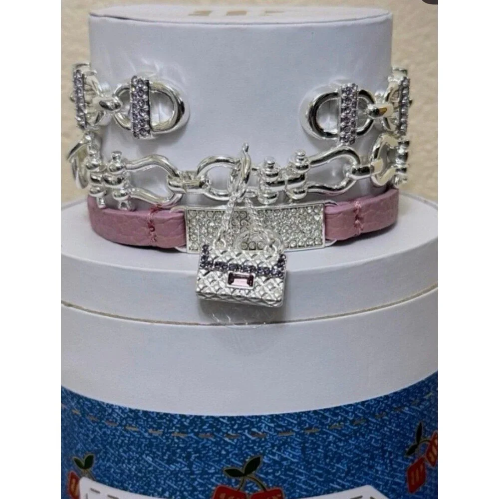 Lab Created Stones on removable charms (purse) on Silver Plating.
