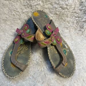 Spring step L'ARTISTE TOE RING MULTI COLOR SLIDE WEDGE SANDALS EUR SZ38