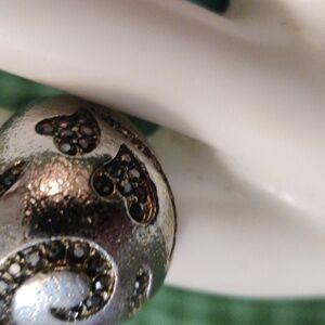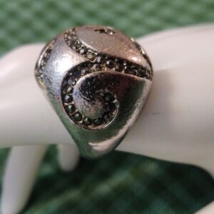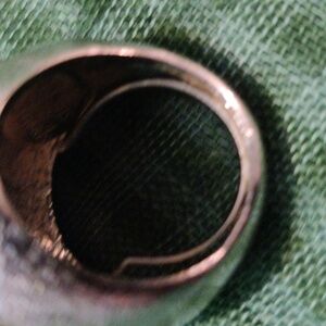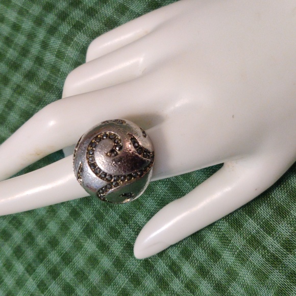 Huge bobble ...silver colored ring size 8 has hearts engraved on it very pretty. Someone worked real hard on it. The company name is Spring Street so it is marked. Free surprise gift with every purchase and Happy Poshing