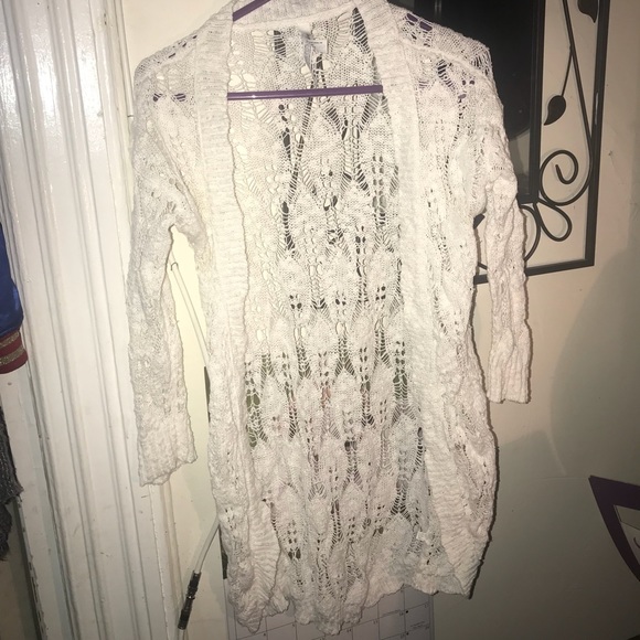 Pretty white cardigan sweater with beautiful stitching great for spring