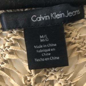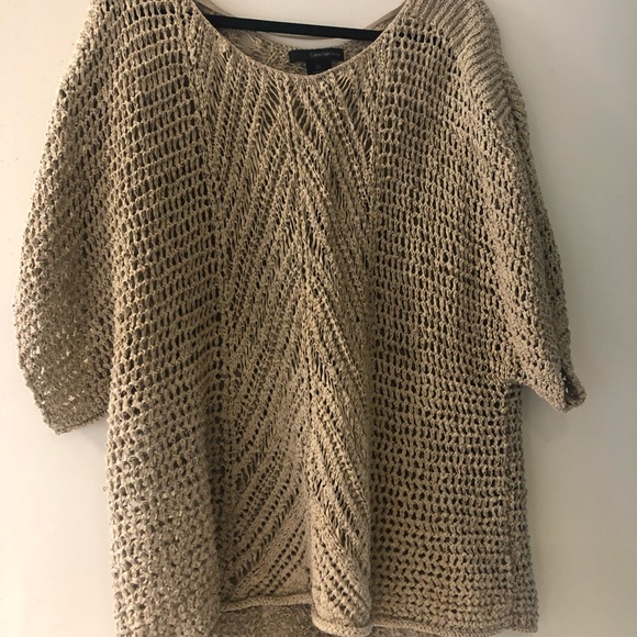 Calvin Klein khaki open-knit sweater. Looks great on every figure.