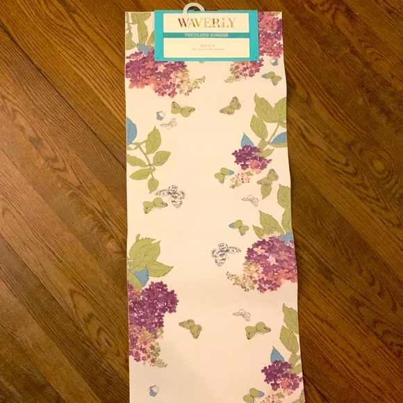 Cute spring table runner. Brand new! 14x70 inches. Vinyl feel wipes clean.