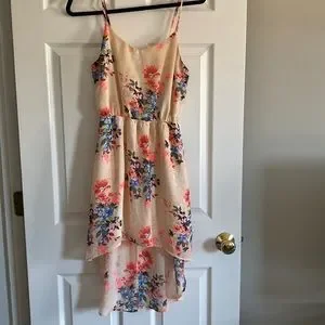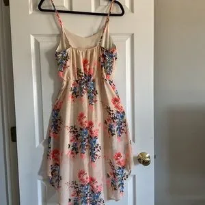 Light dress with beautiful flowers. Straps are adjustable, elasticity in chest area and is not see through with extra layer underneath