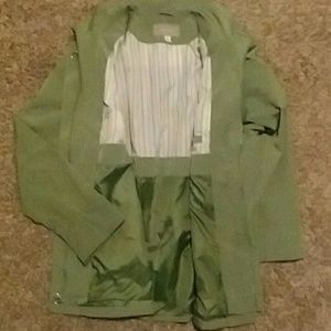 This is a Croft & Barrow Spring/Fall jacket size large. It's gently used in very great condition. The color is green, a little bit like sage. It's about 30 inches long from the shoulder to the bottom. (I'm 5'5" and it comes mid thigh on me).
