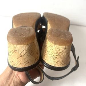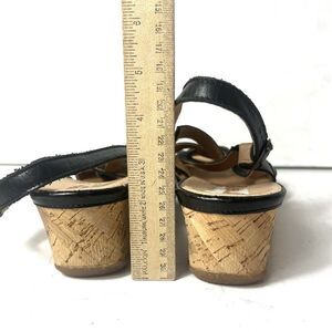 Spring Step Sandals Black Leather Cork Heel Sling Back Women Sz EU 42 US 11.5-12