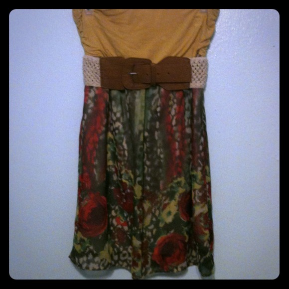 Cute Strapless Dress w/ belt . Cotton on the top and see through bottom with cream underskirt .