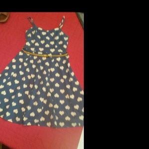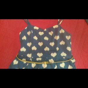 Turquoise Heart Print, high waist yellow belt, mid thigh length*worn once/like new*