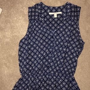 No sleeve dress. Buttons down on the top and scrunches in midsection. Flower print at the bottom. Loose fitting. Worn once.