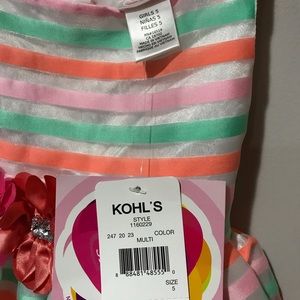 This dress catches your eye! Very attractive colors and adorable flower adornment.