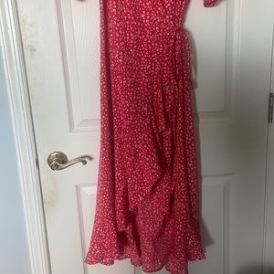 Tie to close, long mid-length short sleeve dress! Light weight and looks like a hi-low dress due to the way it ties. NEVER WORN , tags still attached!!!