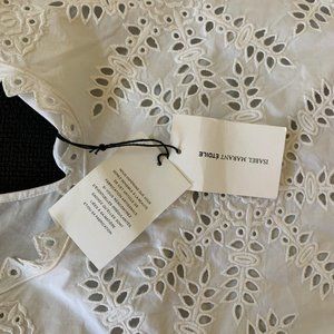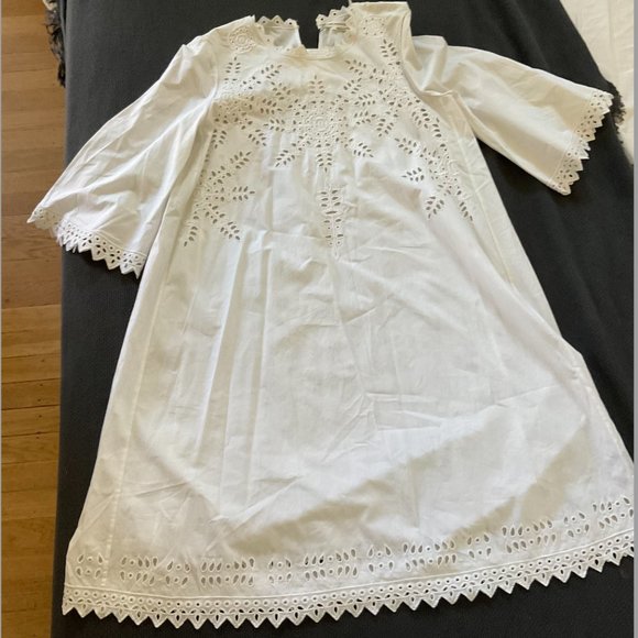 Isabel Marant white voile cotton dress with 3/4 length sleeves and eyelete lace detailing throughout. Never worn, NWT. Purchased at her shop in Shoreditch, London. Pretty as a picture. Both sweet and chic. Summer is never over.