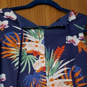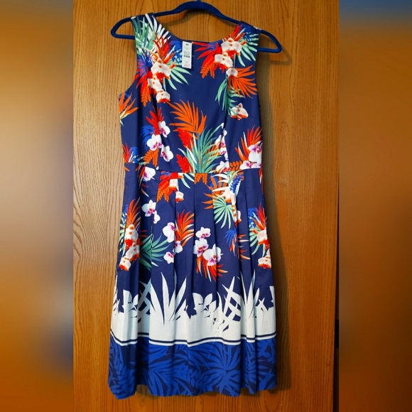 Beautiful multicolored, semi-pleated cotton dress with lightweight polyester lining.