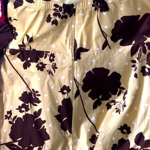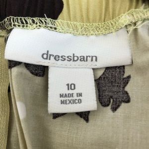 Dressbarn spring/summer dress size 10 in good condition. Light green dress with white polka dots and brown flowers. Brown tie for back of dress. Button adjustable straps with 2 size adjustments. One button has been replaced. Dress is excellent for church, weddings, etc.
