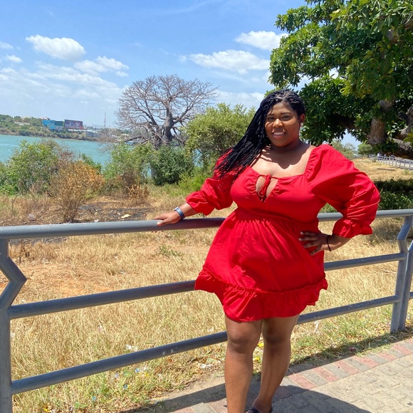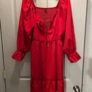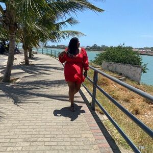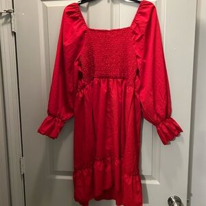 Bright red dress with ruffled details. Perfect for everyday, parties,festivals, vacation, etc! Dress down with sandals. Dress up with heels!! Worn once and dry cleaned. Top Rated Seller.