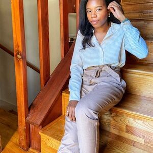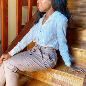 • high-waisted, cropped slacks with belt