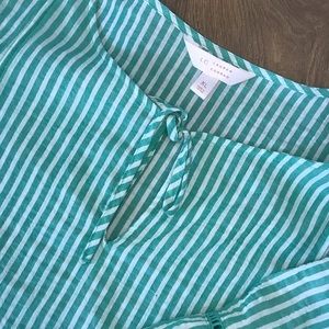 Super lightweight spring/summer blouse. Cute keyhole tie front fun ruffle shirt sleeve.