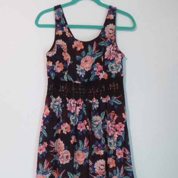 This dress is absolutely gorgeous! It has a colorful flower design throughout the dress with lace around the waist. Worn once at an Easter church service. Comes from a no pet and smoke-free home. Feel free to make offers! :)