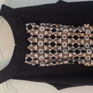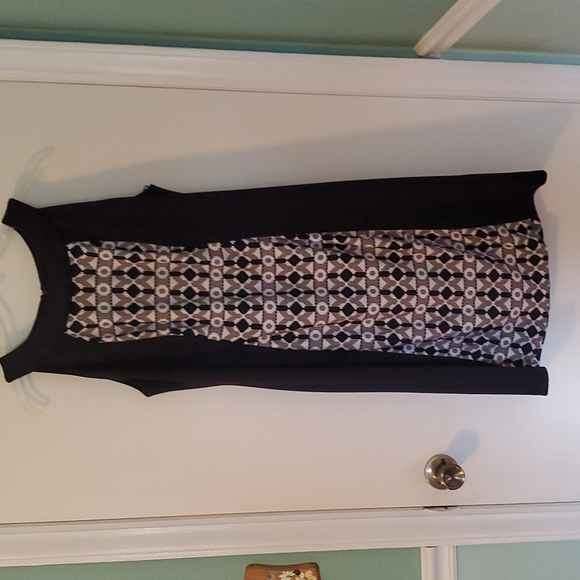 Dressy black print sleeveless dress qith geometric print. Perfect for a night out qith friends or your man crush, and stylish enough for Sunday church service.