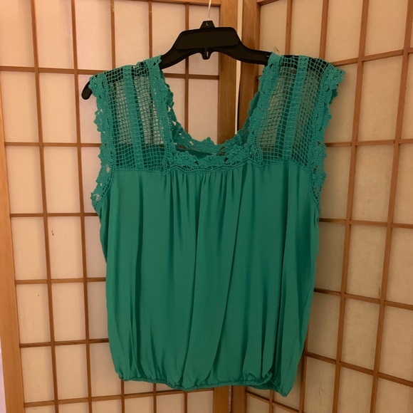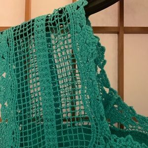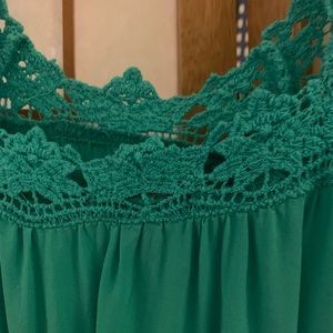 Green silk shirt with crocheted neckline and sleeves - elastic waistband - designed by Max Edition