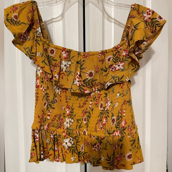 Yellow/floral off the shoulder top! Size medium! Super cute for summer/spring and perfect with a mini skirt or jean shorts!