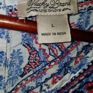Beautiful red and blue embroidery! Perfect for Spring/Summer and/or Festive Memorial Day/4th of July. Even for upcoming Cinco de Mayo. Pair with white/navy linen/jean shorts/capris. Accessorize with Turquoise, shiny silver jewelry and you're ALL set!!!