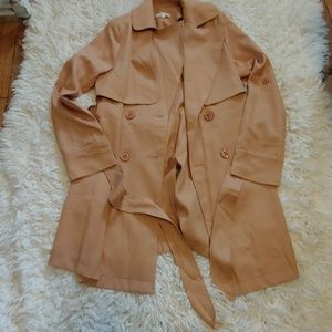 Awesome Light tan spring jacket measurements are buttons pit to pit 19 in shoulder to hem 33 in shoulder to shoulder 15 in never worn has been hanging in my closet for a year I need to sell it really nice coat