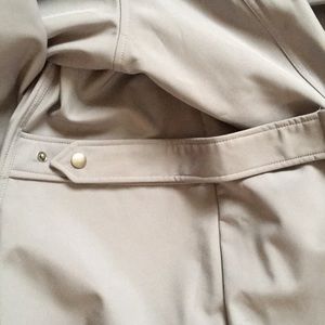 This jacket It’s thin enough to wear anytime spring or fall you could even wear it on a cool day in the winter time. Has inside pockets has a hood not heavy at all. Great addition to your closet. NWOT