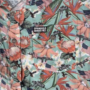 Springfield Armory Hawaiian Shirt Mens Size M Teal Gun American Flag AOP Bullpup