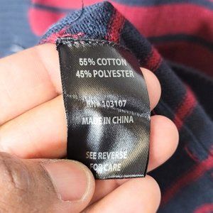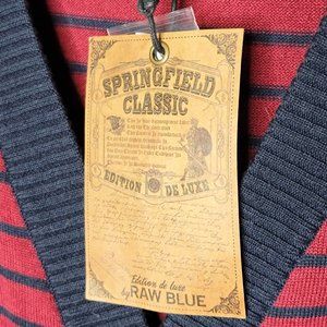 Springfield Classic NWT Men's Burgundy & Navy Striped Cardigan Size XXL. Designed by Edition De Luxe by Raw Blue. It comes with an extra button & thread. Made of a cotton polyester blend.