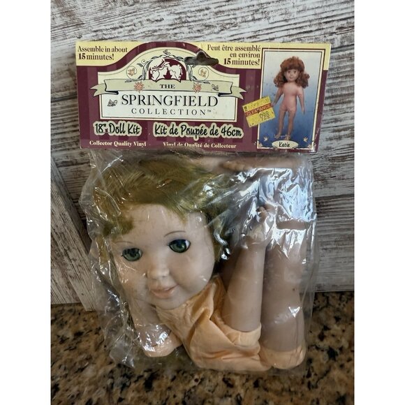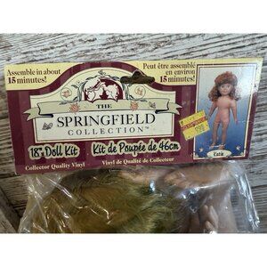 This is a Springfield Collection 18" Doll Kit from 1996. This doll’s name is Katie. The kit includes a soft body doll with straight hair, green eyes that open and close, and a light complexion. The doll is vintage and original, compatible with other 18" dolls, and weighs 15 oz. The kit is brand new and sealed, making it a great addition to any doll collection. This kit was purchased at an estate sale. It is new old stock. Thank you for viewing. (A160428252PM).