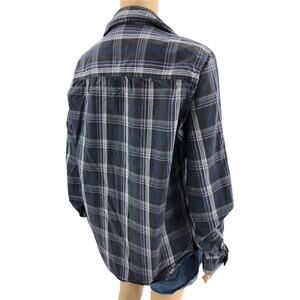 Springfield LARGE Women's Gray Blue Pink Plaid Certified Smart Worn In Fade Button Up Front Pearl Snap Pockets Boyfriend Shirt