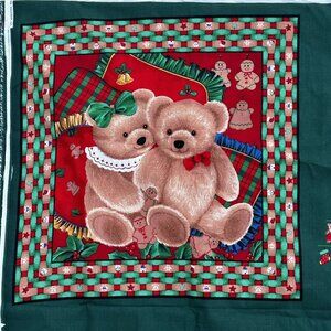 Springs Industries Christmas Bears Pillow Panel Fabric Red Green Gingerbread