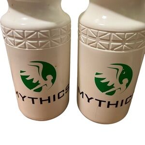 Good condition, some wear/ scratching as shown. Springs Squeeze. Water Bottles. White with green and black Mythics graphic. Set of 2 bottles, one comes with filter in lid. Smoke free home. No trades, offers welcome.