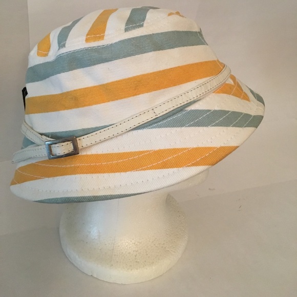 Large size hat from Goorin Bros. Co. white, blue, yellow stripes. Display item, but new. There are few wear marks.