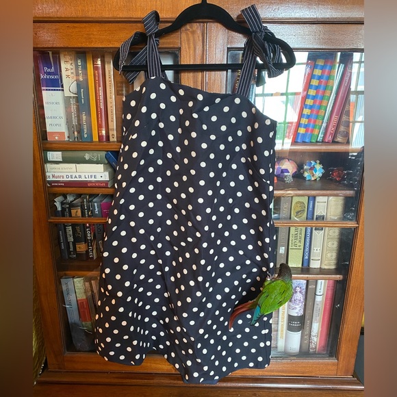 Beautiful polka dot mini dress, perfect for spring and summertime! Tie over the shoulder straps and a hidden zipper on the back. Falls just above the knee, no flaws as far as I can tell! Was only worn once.