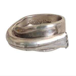 Elegant vintage Rogers Bros "Springtime" spoon ring from 1957, featuring intricate flower etching in silver-plated craftsmanship. This mid-century artisan jewelry piece is perfect for springtime vibes and lovers of floral and vintage styles. A timeless, one-of-a-kind accessory to elevate your look.