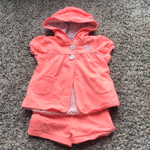 Matching soft. SS hoodie and shorts set! Neon orange! Seahorse detail! Floral top to match shorts also!