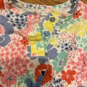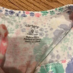 Carter’s nine month top with bloomers, button-down, and shortsleeved dress