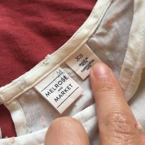 Springtime lightweight blouse. Super cute, textured pastel spots, ruffled bottom and ruffled sleeves. Never worn, too small on me. Fits as extra small
