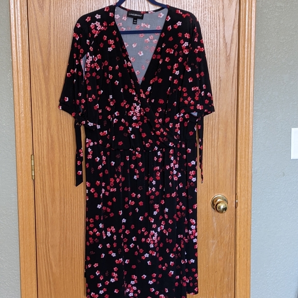 This is a cute springy dress. Cut outs in the arms, tires at the elbow. Defined waist, room for your bust. Knee length. Worn once.