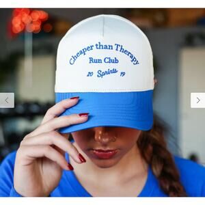 Sprints Cheaper Than Therapy Run Club Structured VP Hat Blue & White EUC Unisex