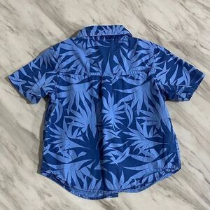 Sprockets 2T Blue Leaf Tropical Print Button Down Shirt Cotton Short Sleeve