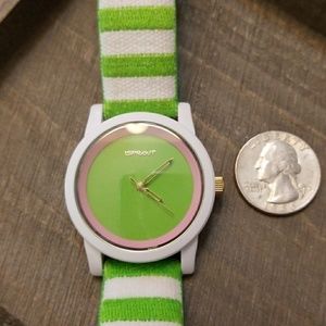 This colorful Sprout watch has a LIME GREEN and WHITE Strap..the face of the watch is LIME GREEN ,with A PINK circle...only wore a couple of times...needs a new battery....#191