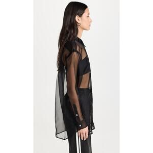 Sprwmn Oversized Sheer Shirt With No Pocket - L Black