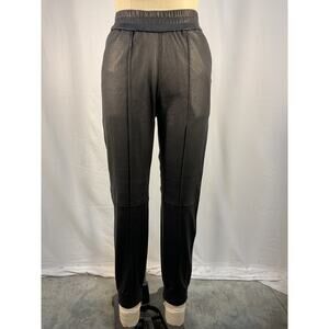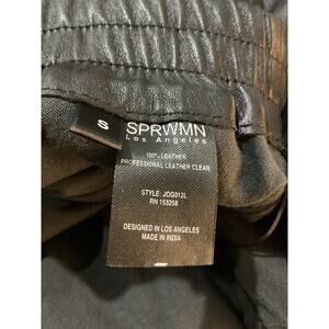 Sprwmn Slim Fit Black Leather Cuffed Jogger Size S: elastic waistband and cuffs, side seam pockets.
