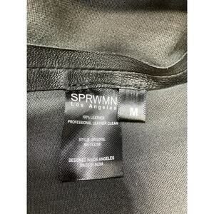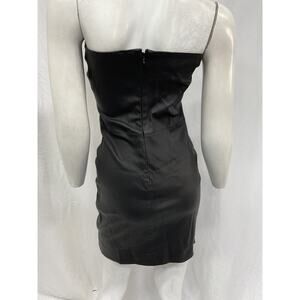 Sprwmn Strapless Black Leather Mini Dress Size M: unlined, exposed back zipper closure, unfinished hem.